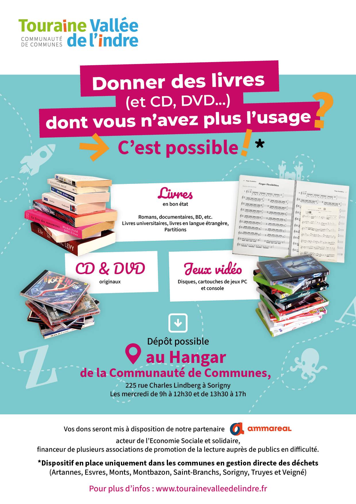 À partir du 1er octobre, vous pourrez déposer, uniquement le mercredi, des livres, CD, DVD et jeux vidéo en bon état au Hangar de la Communauté de Communes.